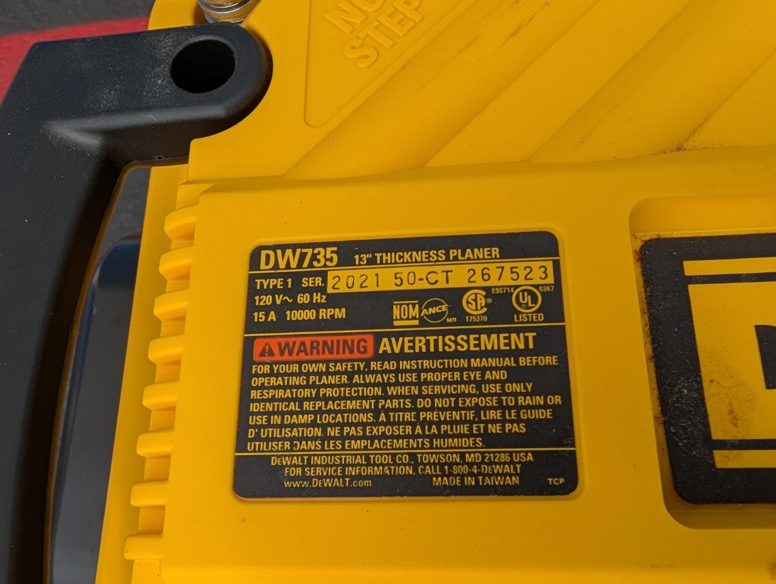 DeWalt DW735 13" Three Knife 2-Speed Thickness Planer 15 Amp Corded