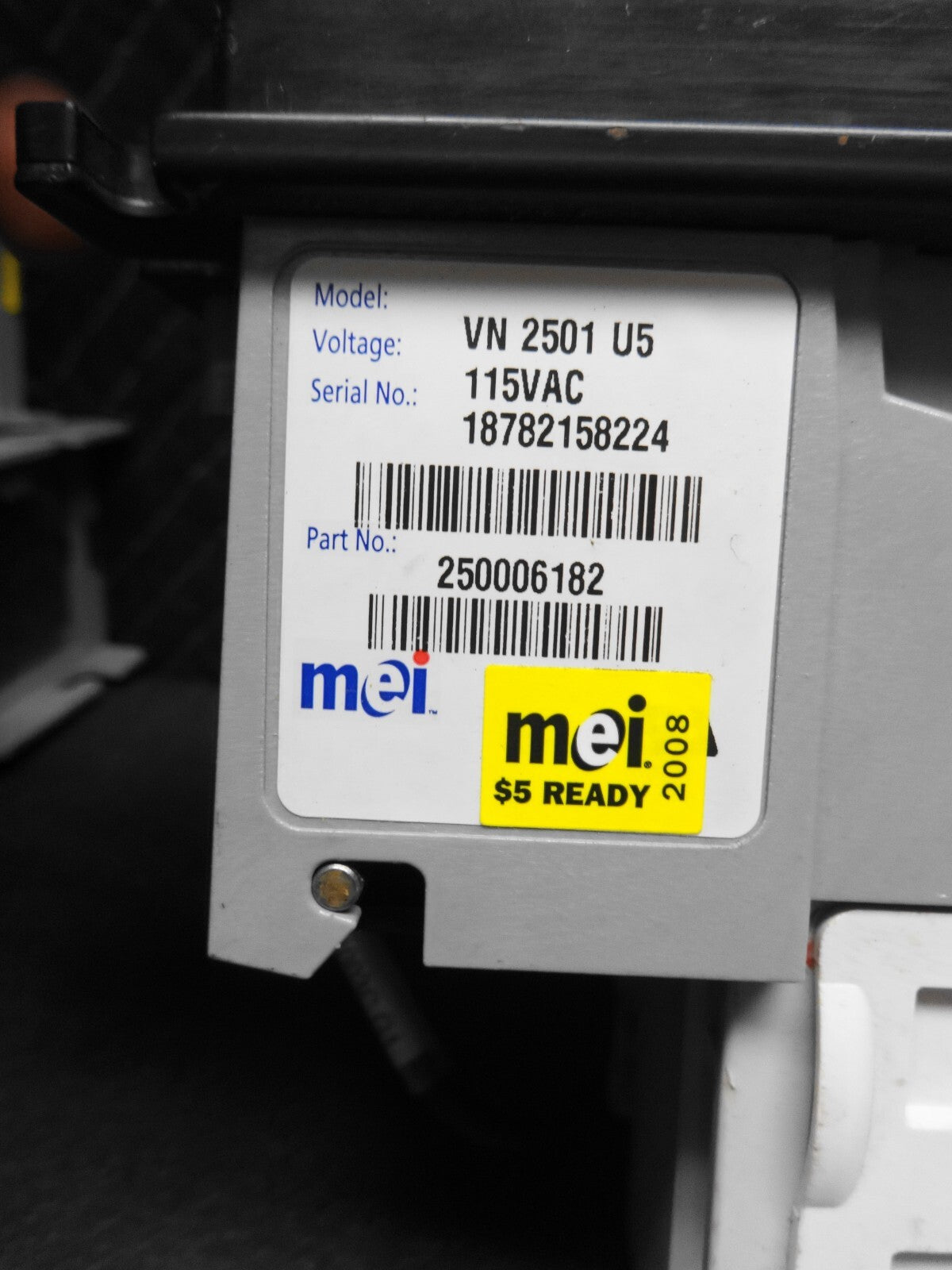 Up for sale is this Mars MEI VN 2501 U5 bill acceptor for $1.00 to $5.00 bill acceptance