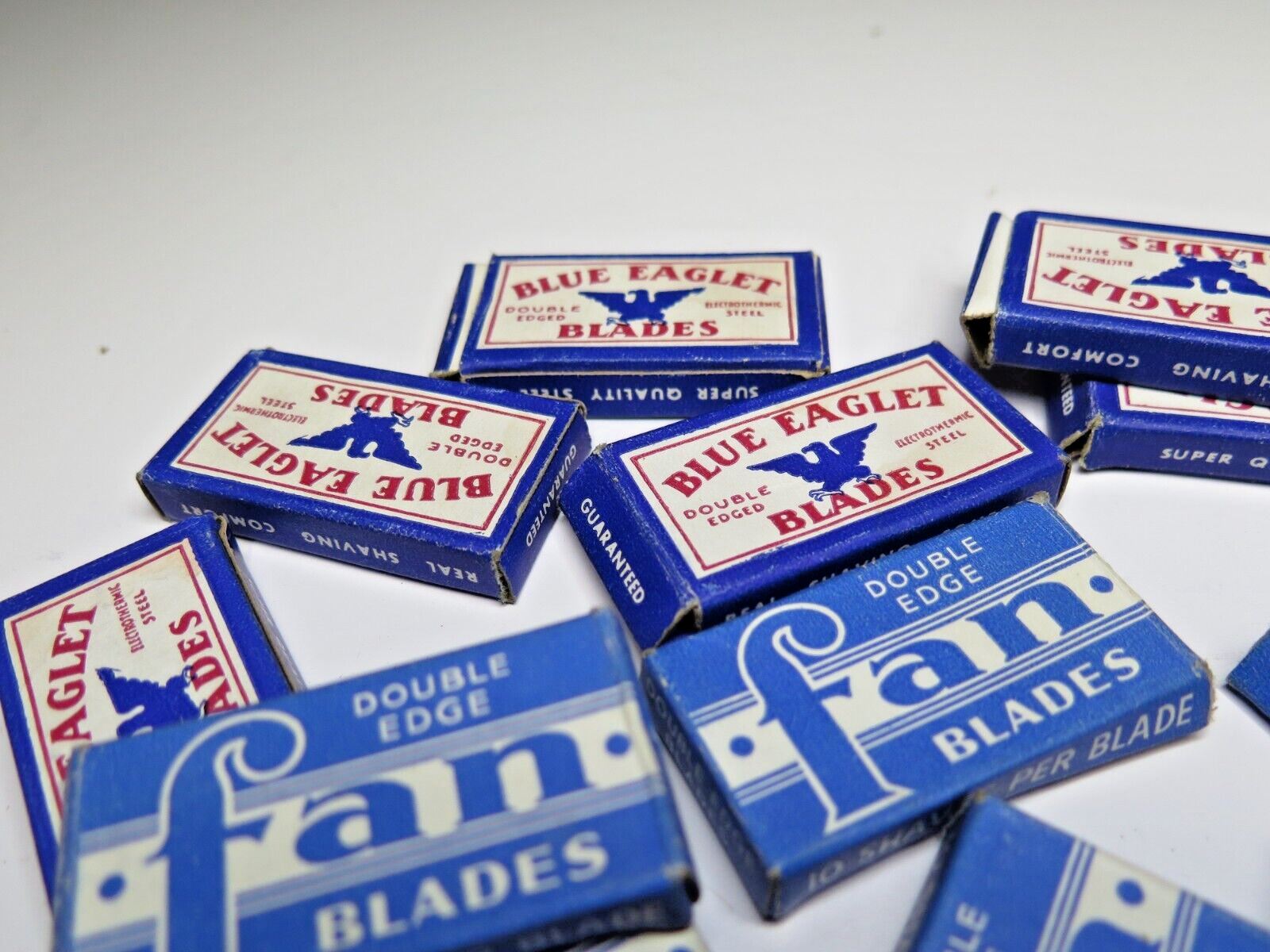 Vtg LOT 25+ boxes Double Edge RAZOR BLADES Gillette New Wonder Blue Eaglet Fan