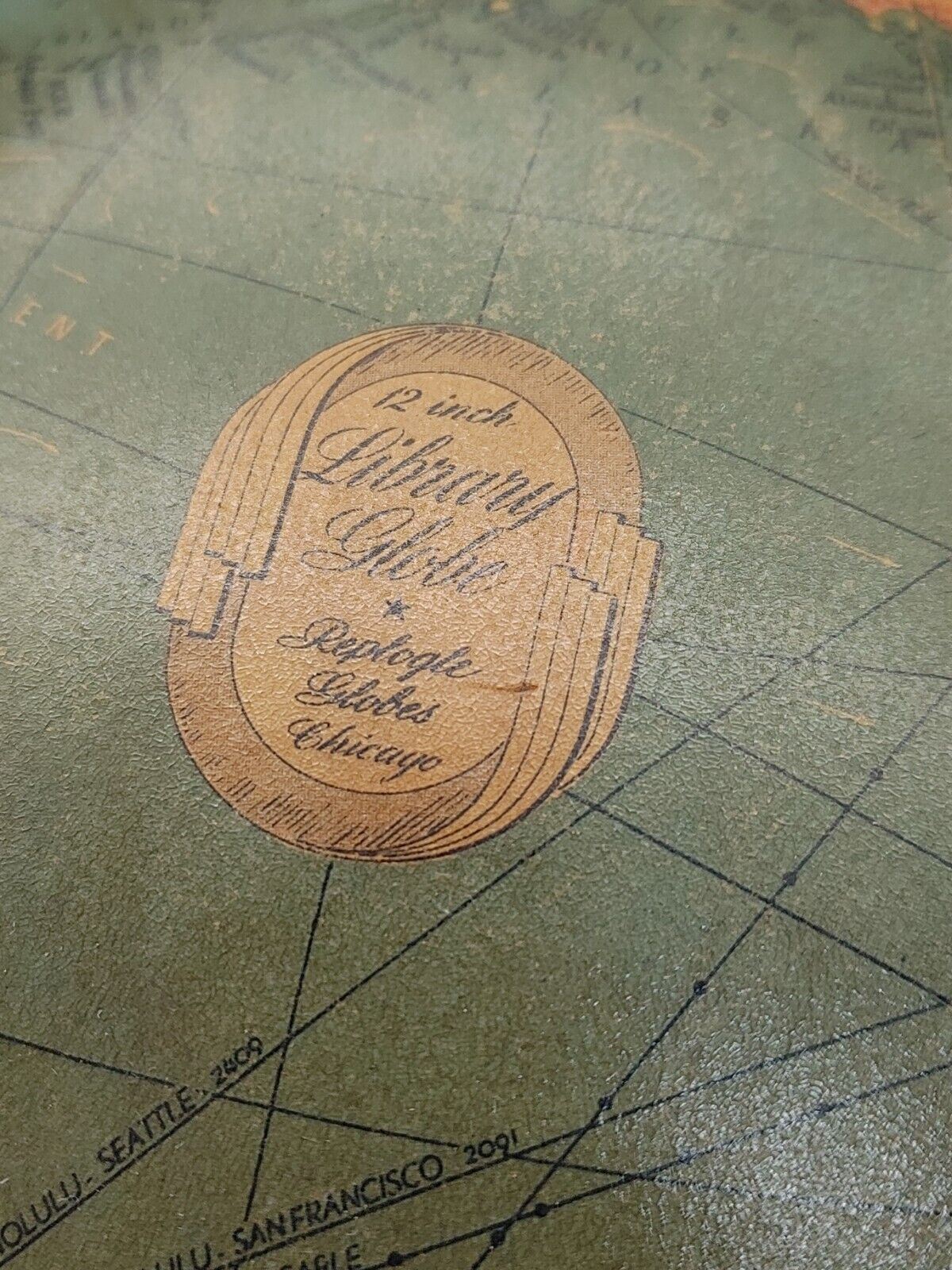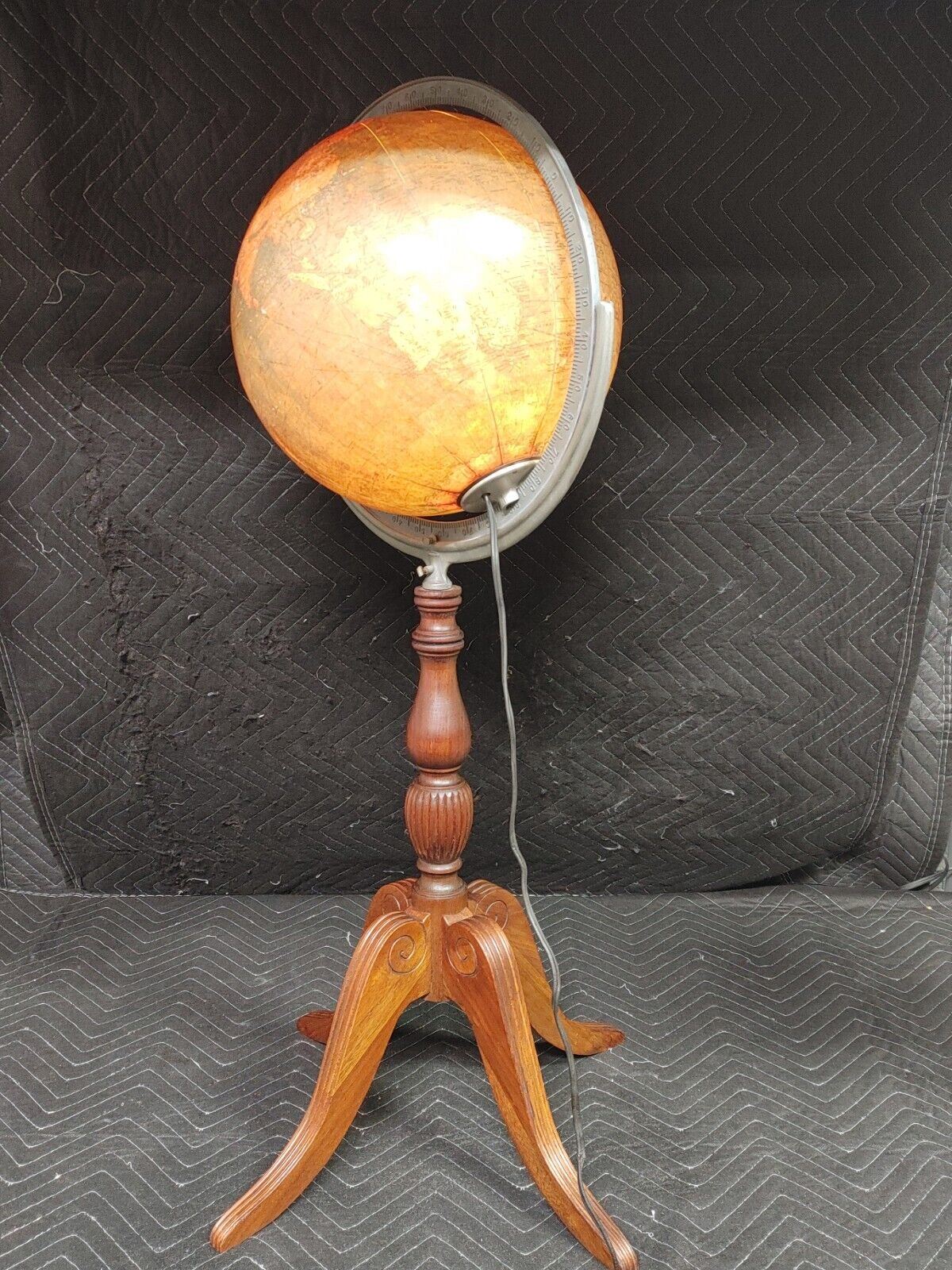 12" Replogle Library World Lighted Globe Lamp w/ wood stand.