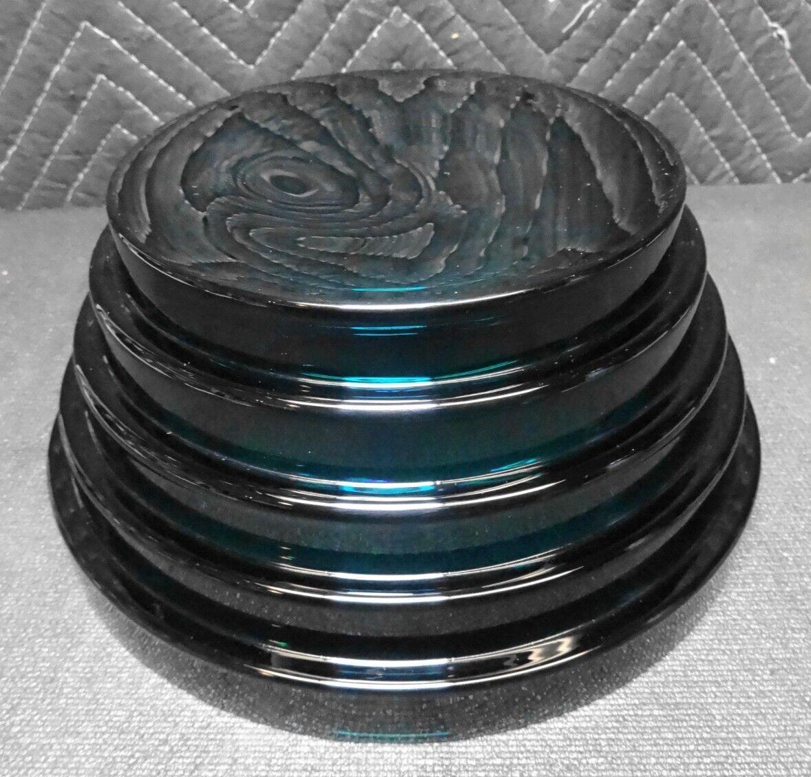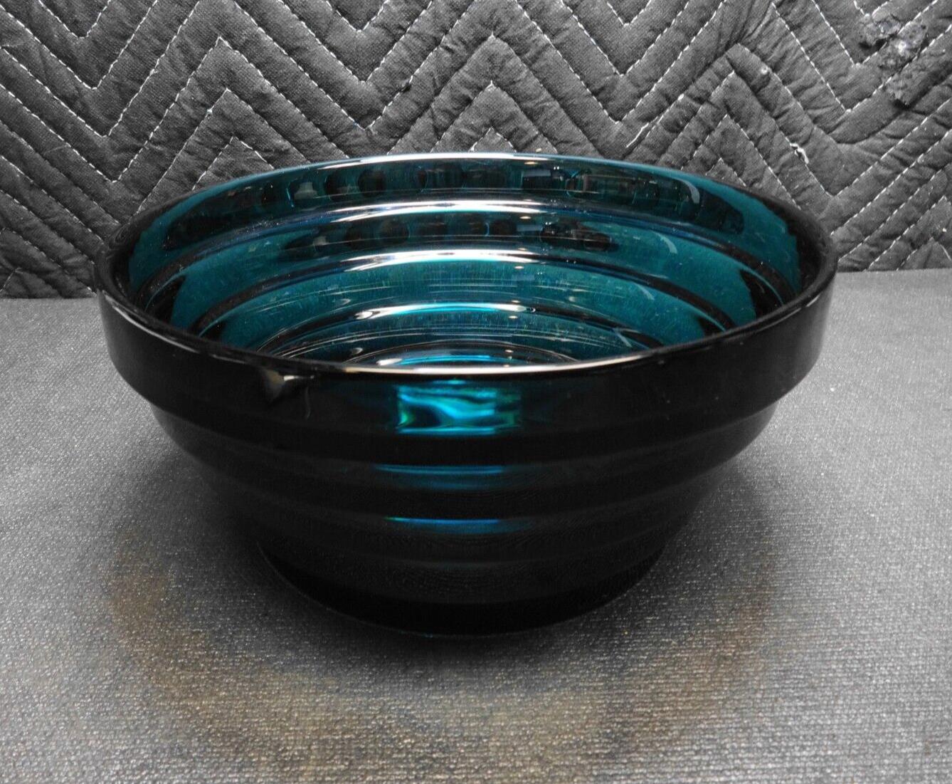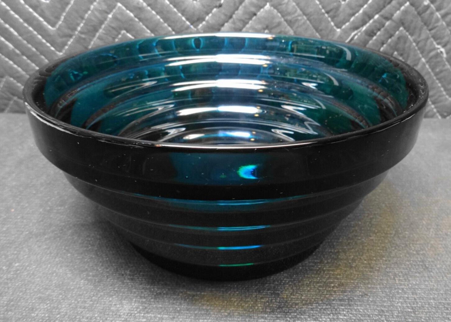 1930's French Art Deco Molded Crystal Bowl - Blue / Cobalt - Sky Scraper