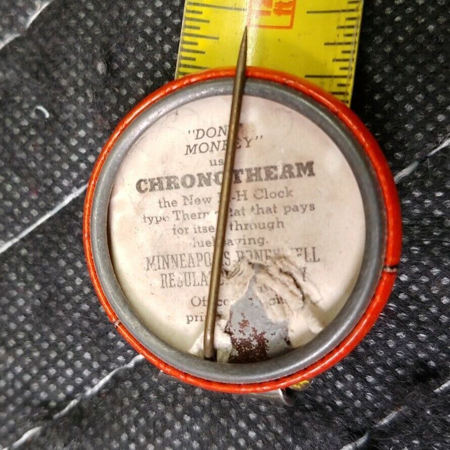 1950's Chronotherm Pin Back Button "Don't Monkey" Advertising Honeywell as pictured