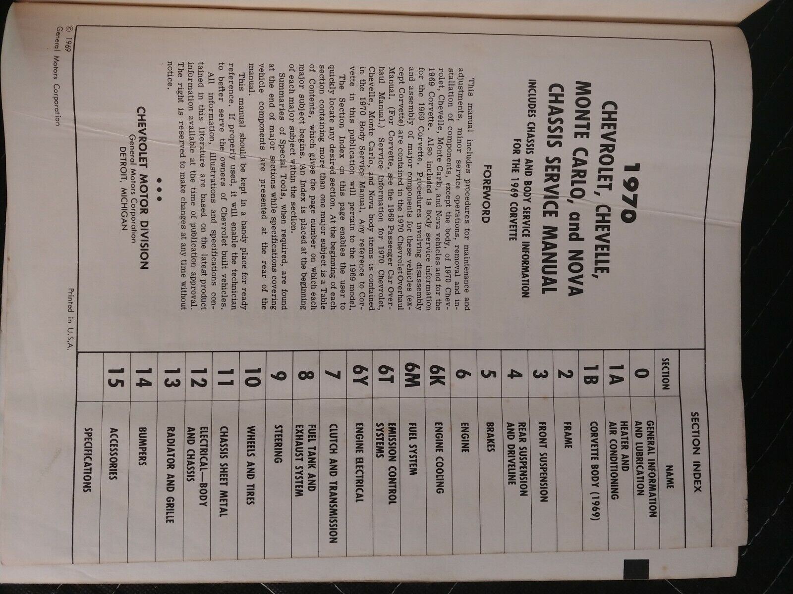 1970 Chevrolet Chassis Service Manual Chevelle Nova Monte Carlo Corvette Chevy