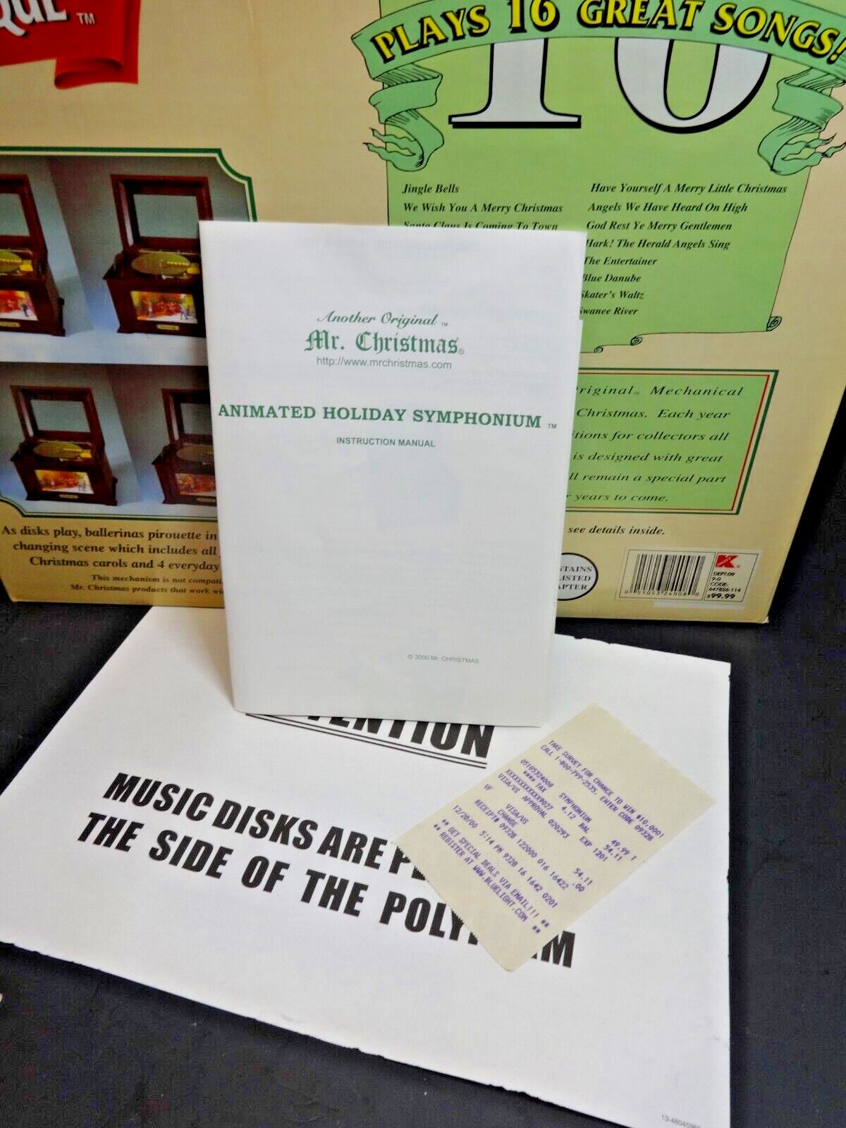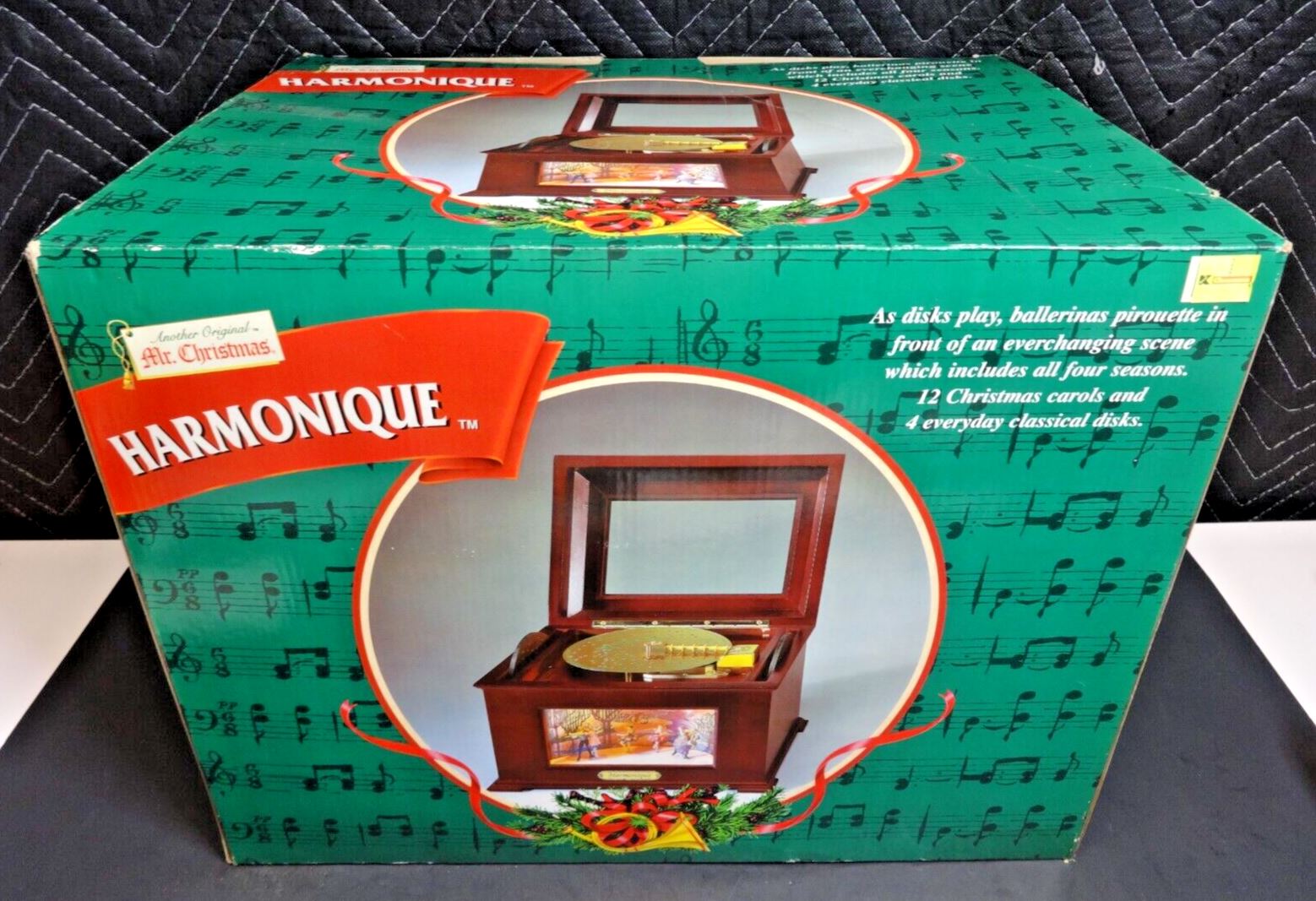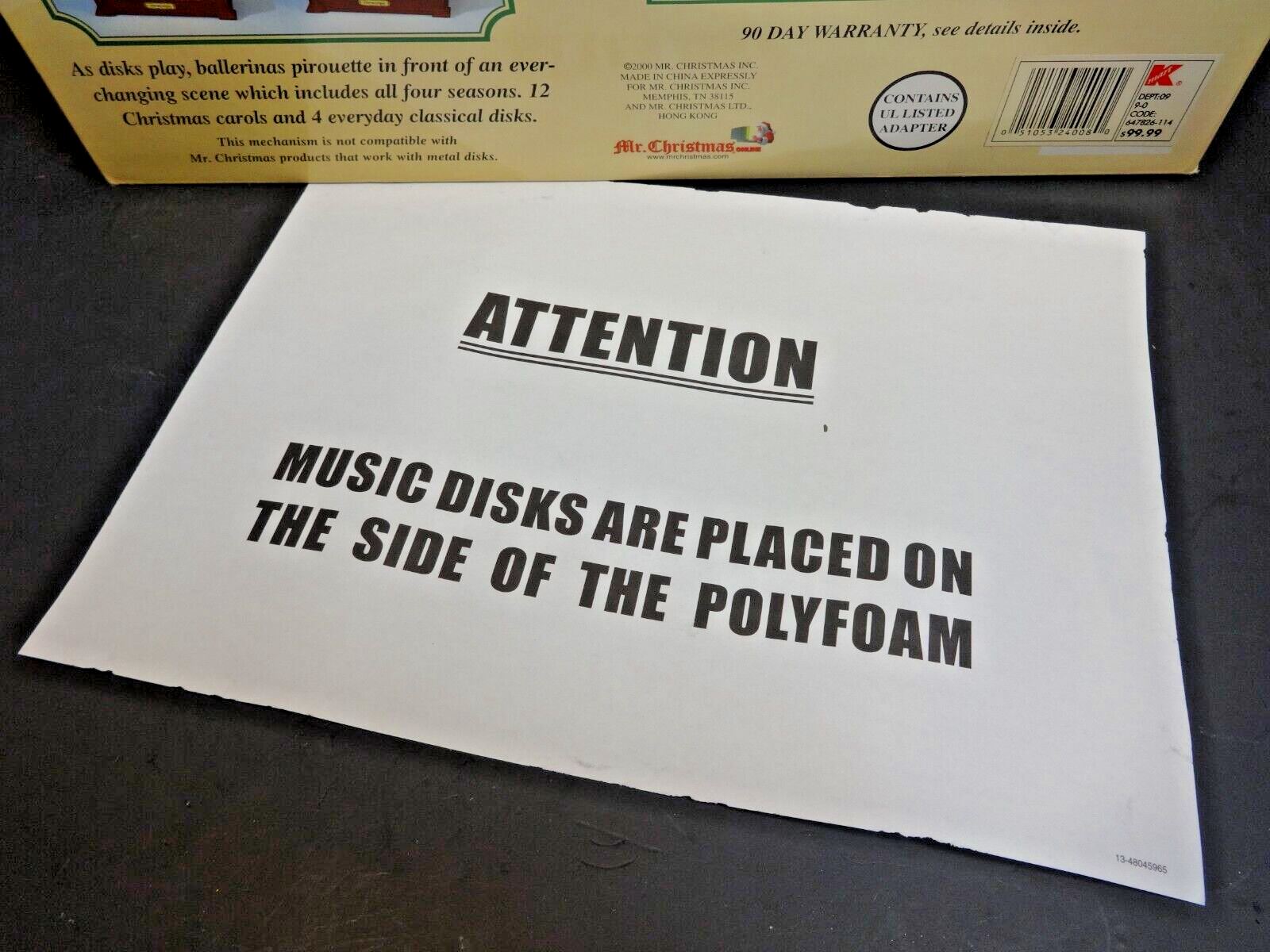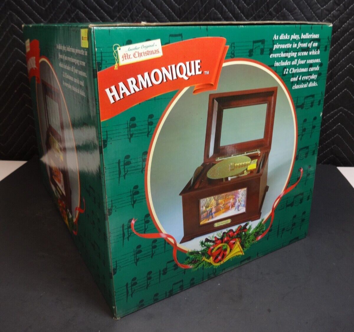 Up for sale is this 2000 Mr Christmas Harmonique Music Box w Animated Ballet Dancers & 16 Music Discs new from old stock from the estate of a collector. The original purchase receipt is included.