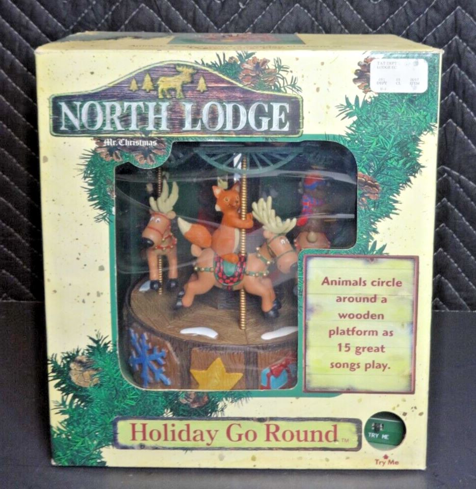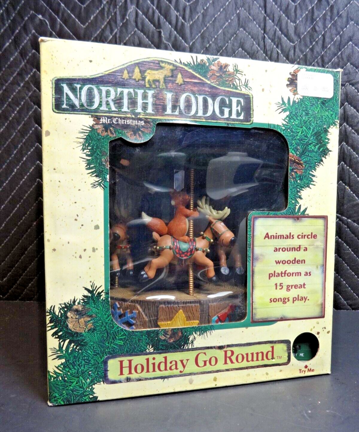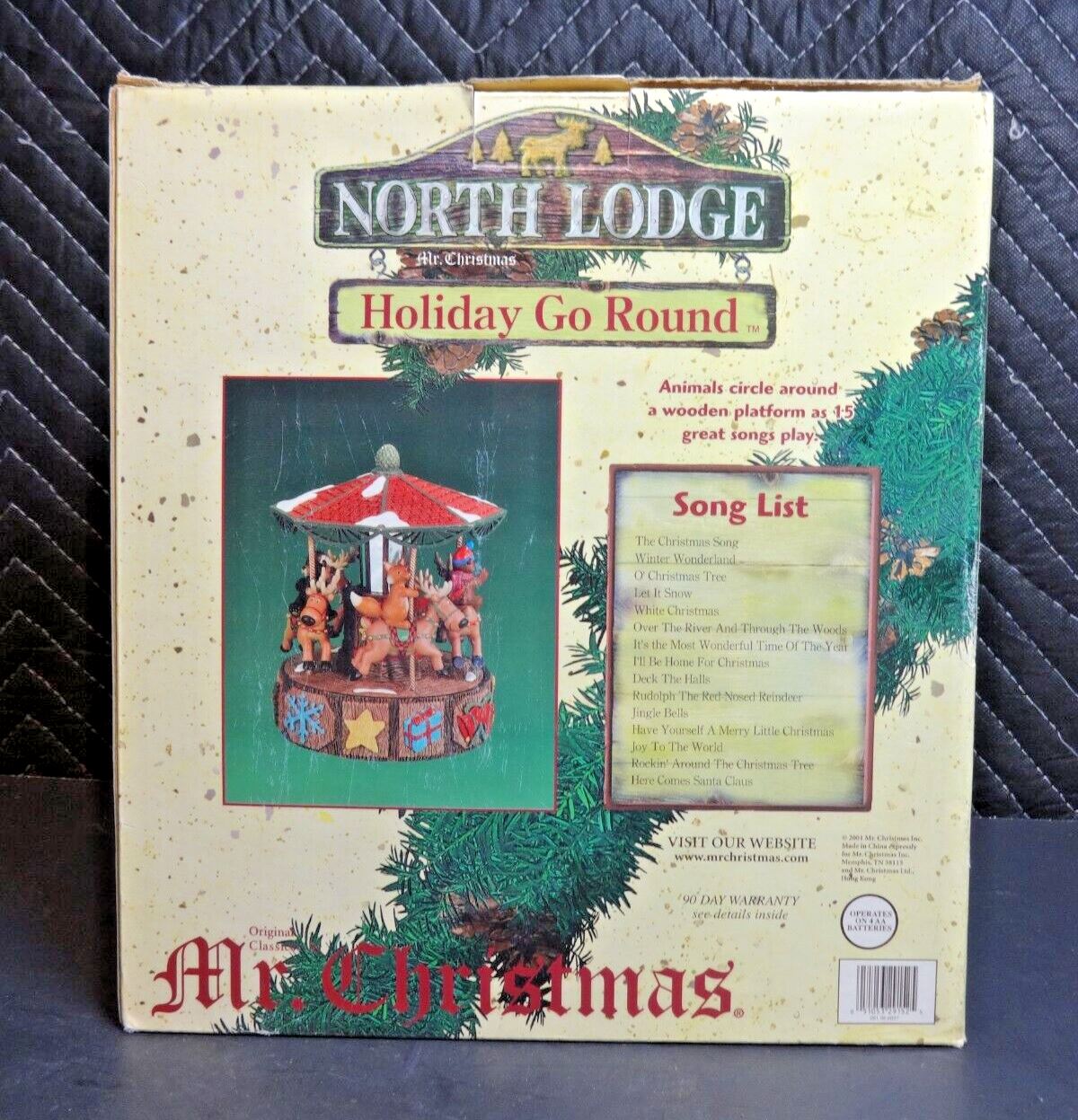 Up for sale is this New from Old Stock 2001 Mr Christmas North Lodge "Holiday Go Round" W/ Animals on Reindeer - 15 Song
