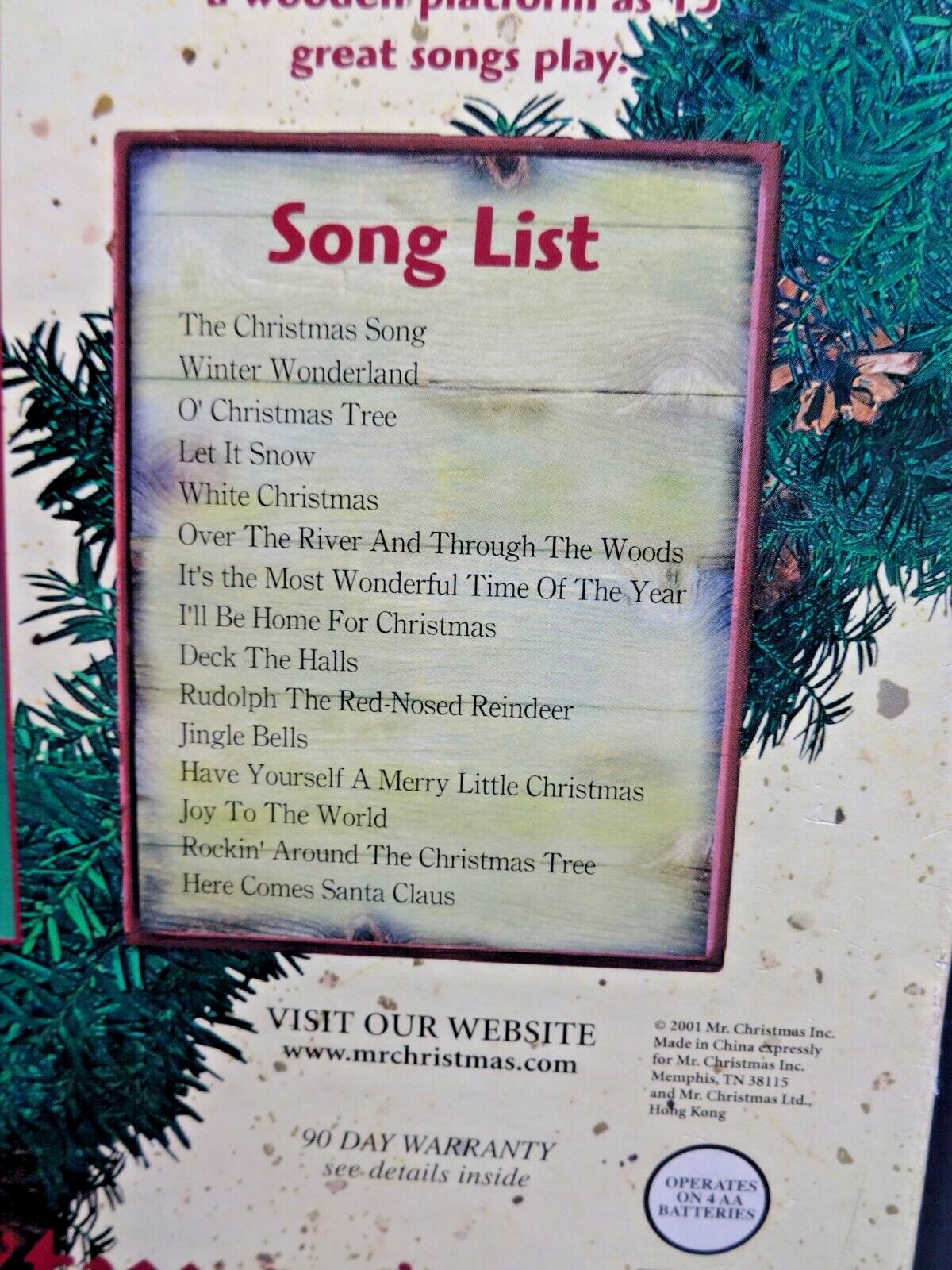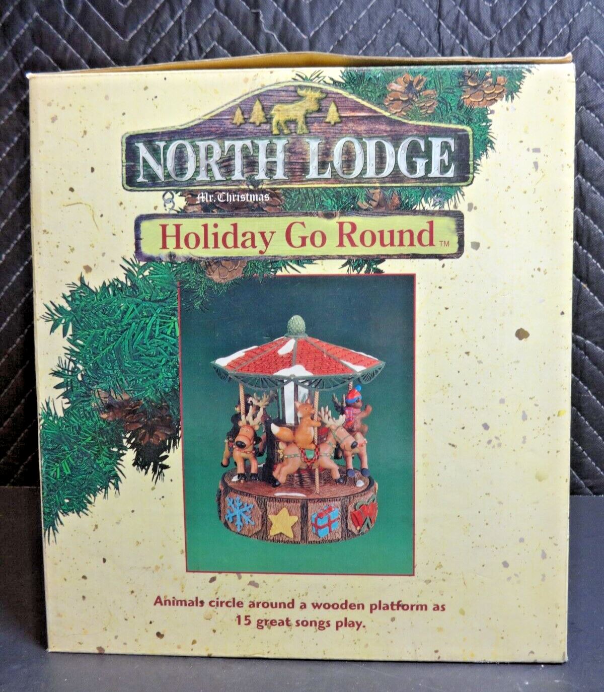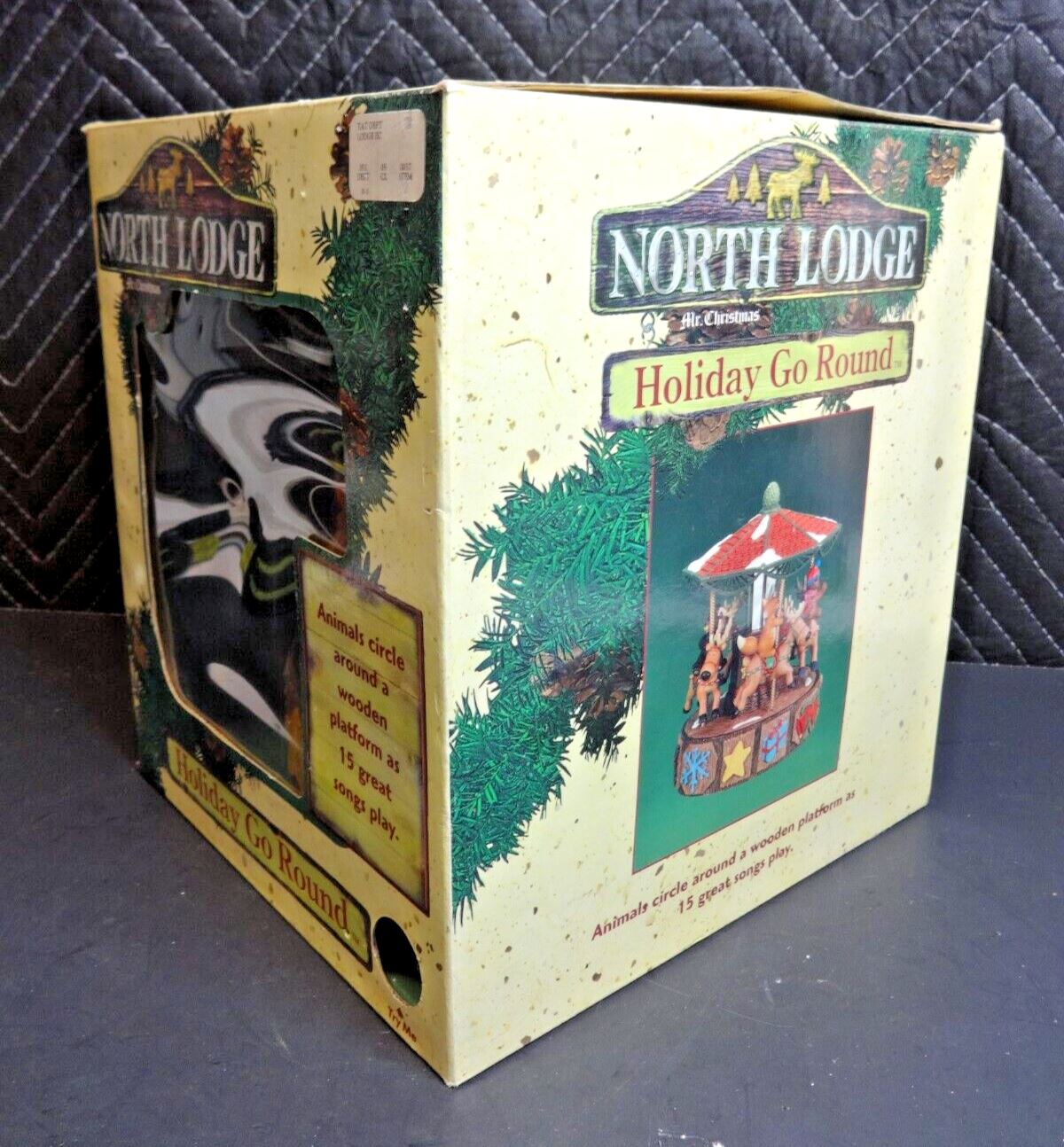 Up for sale is this New from Old Stock 2001 Mr Christmas North Lodge "Holiday Go Round" W/ Animals on Reindeer - 15 Song