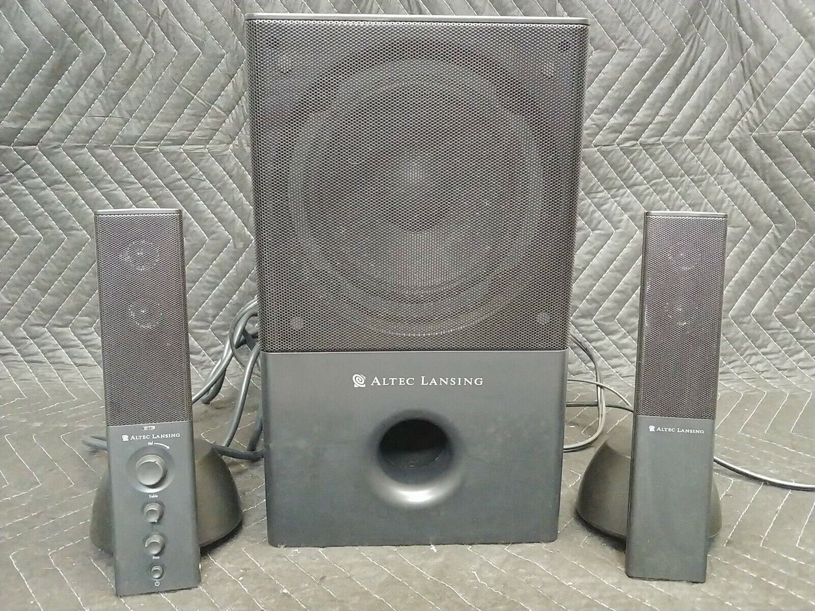 ALTEC LANSING VS4121 Powered Audio System Computer Speakers w/ Subwoofer TESTED.