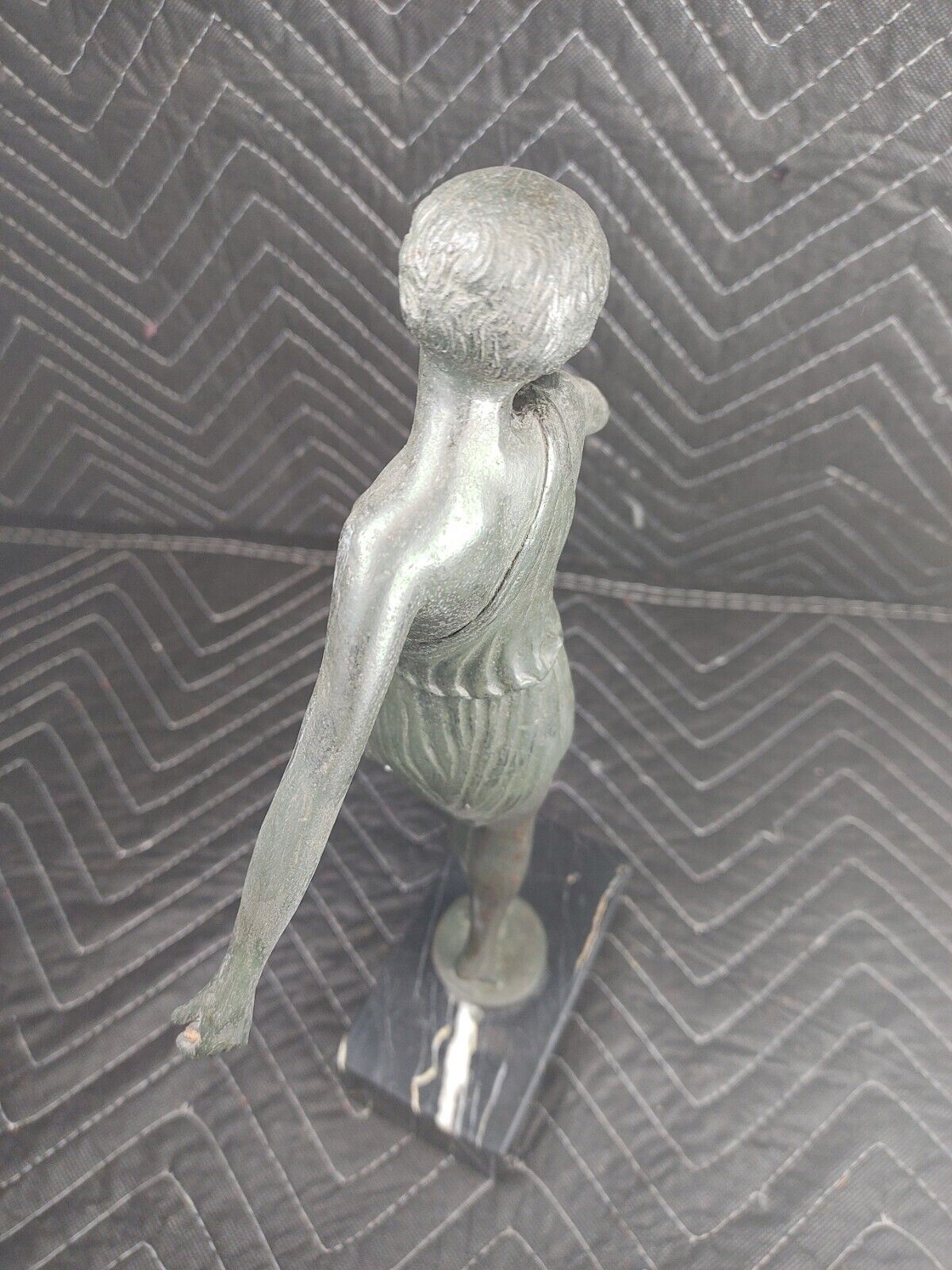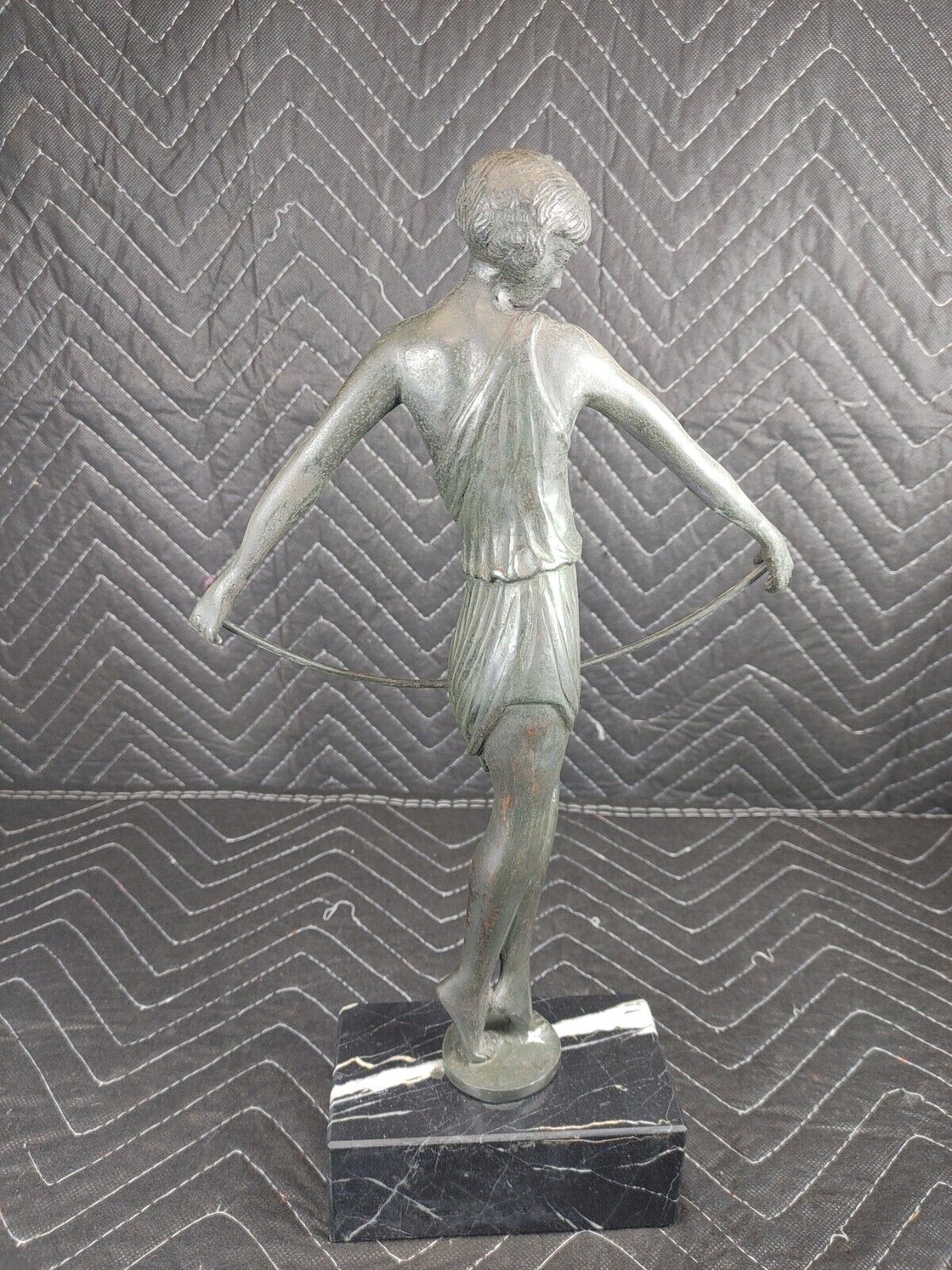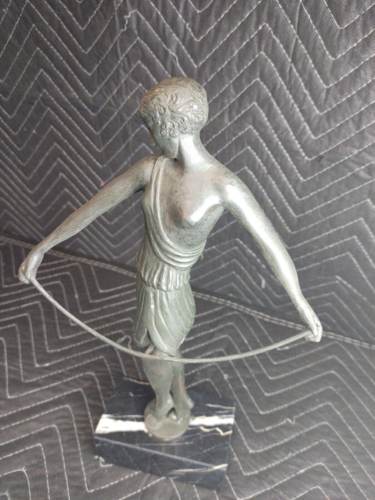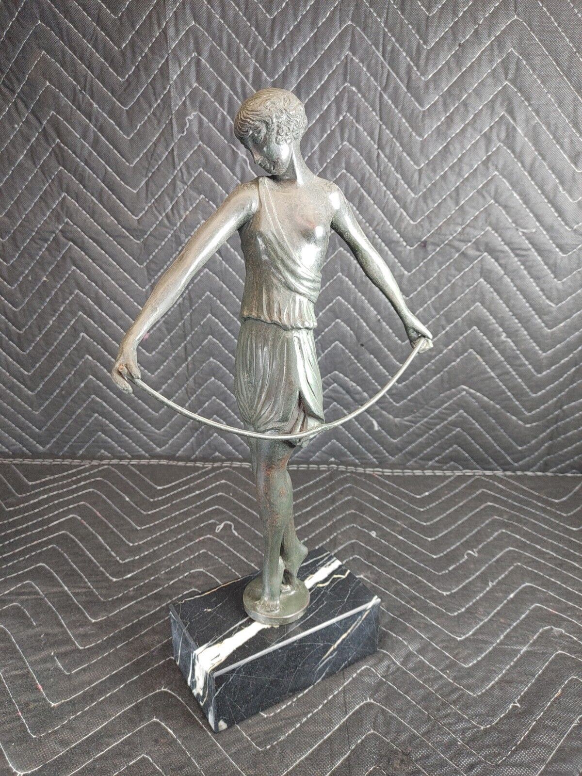Art Deco Sculpture Woman Holding a Bow Archer Bronze Statue 15.5"