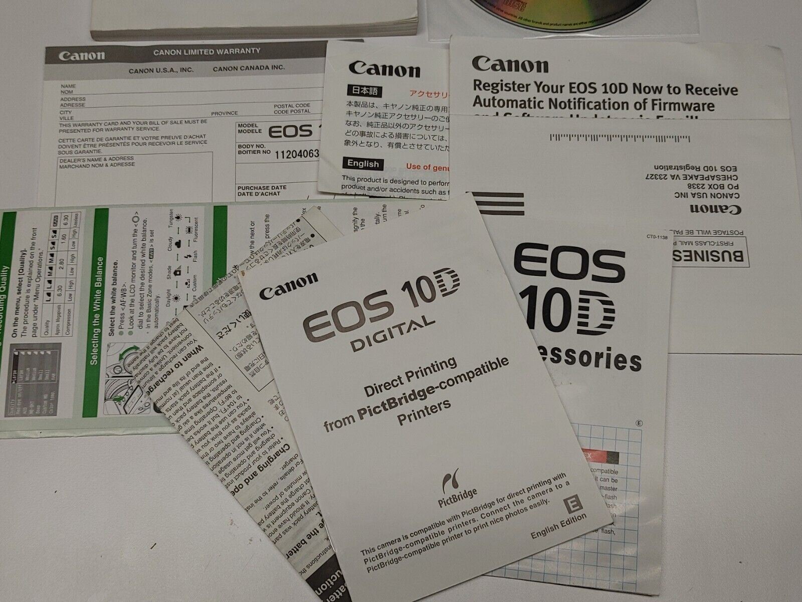 Canon EOS 10D Digital Camera Software & Software Instruction Manual w/ Key