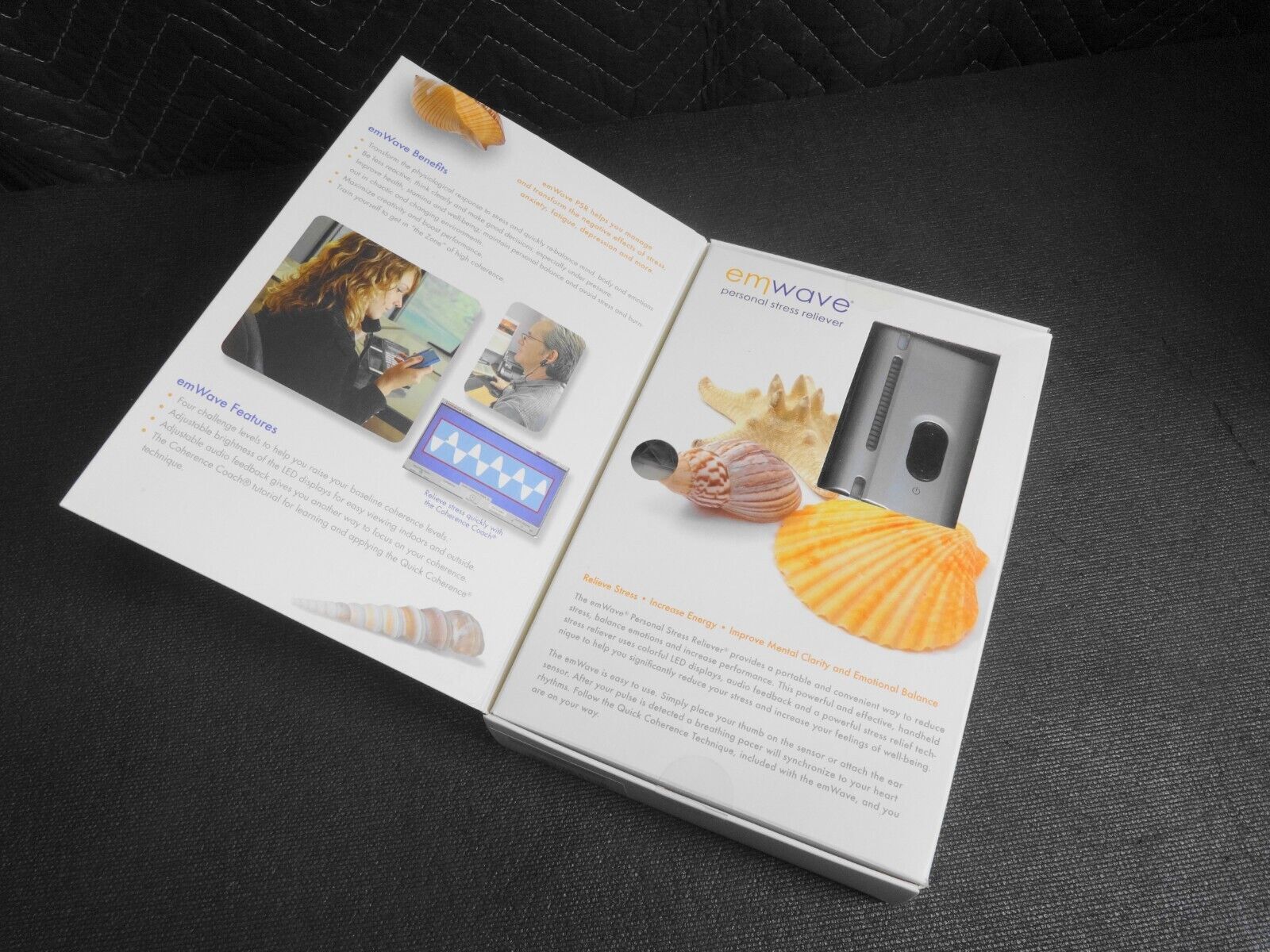 Up for sale is this HeartMath emWave Personal Portable Handheld Stress Reliever complete with accessories, manuals and instructional audio CD in original box.