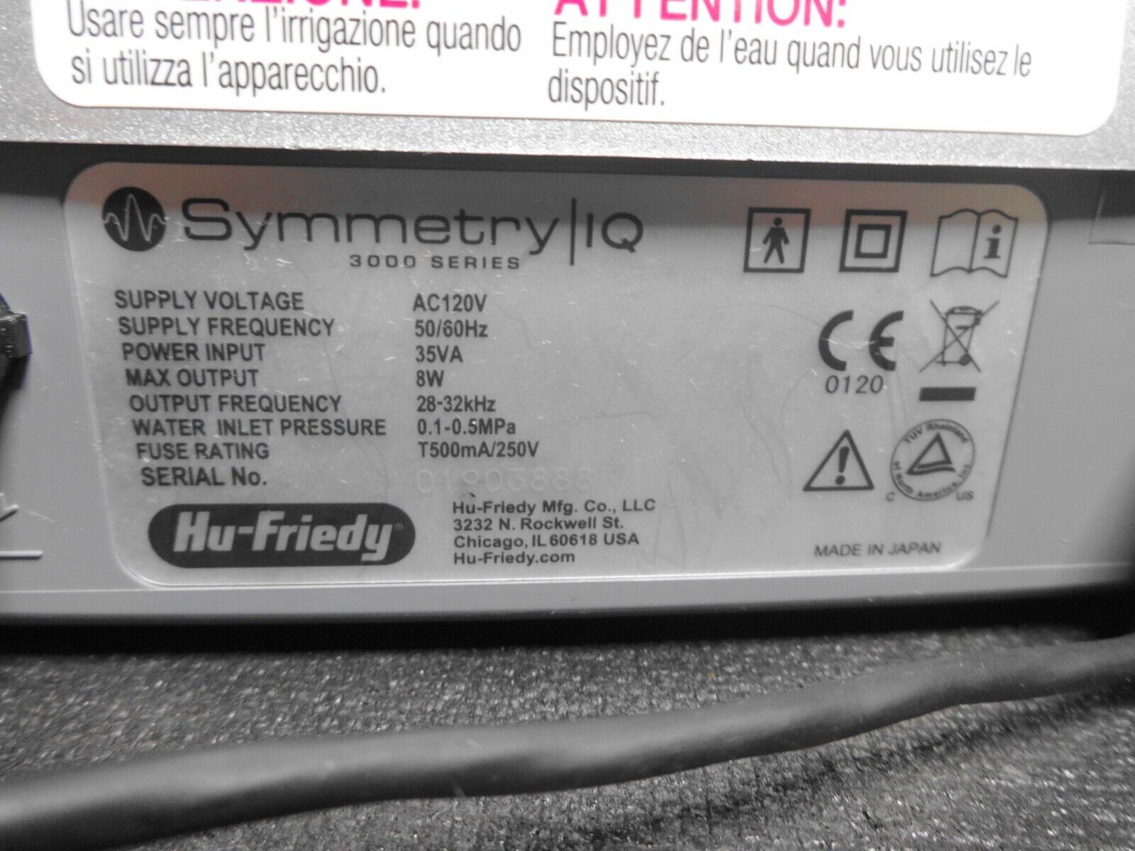 Up for sale is this Hu-Friedy Symmetry IQ 3000 Ultrasonic Scaler in working condition.