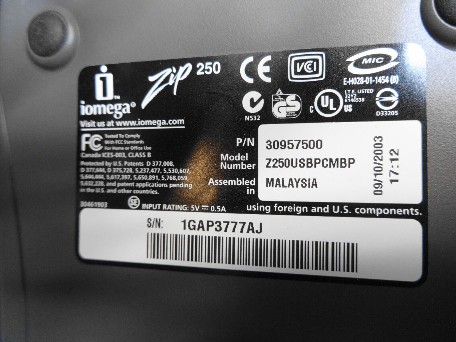 Up for sale is this Iomega Zip 250 USB Powered Zip Disk Drive in Blue - Model Number Z250USBPCMBP
