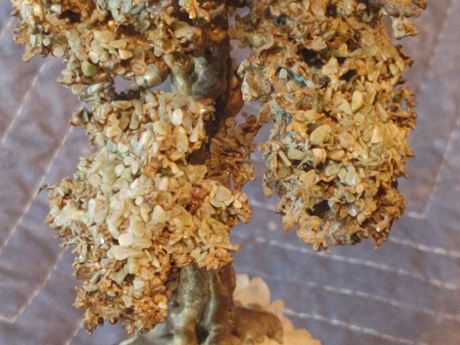 Mid Century Bronze Bookend - Pine Tree Fir w/ Quartz Crystals Base.  The branches are adorned with tiny pebbles/stones as leaves.