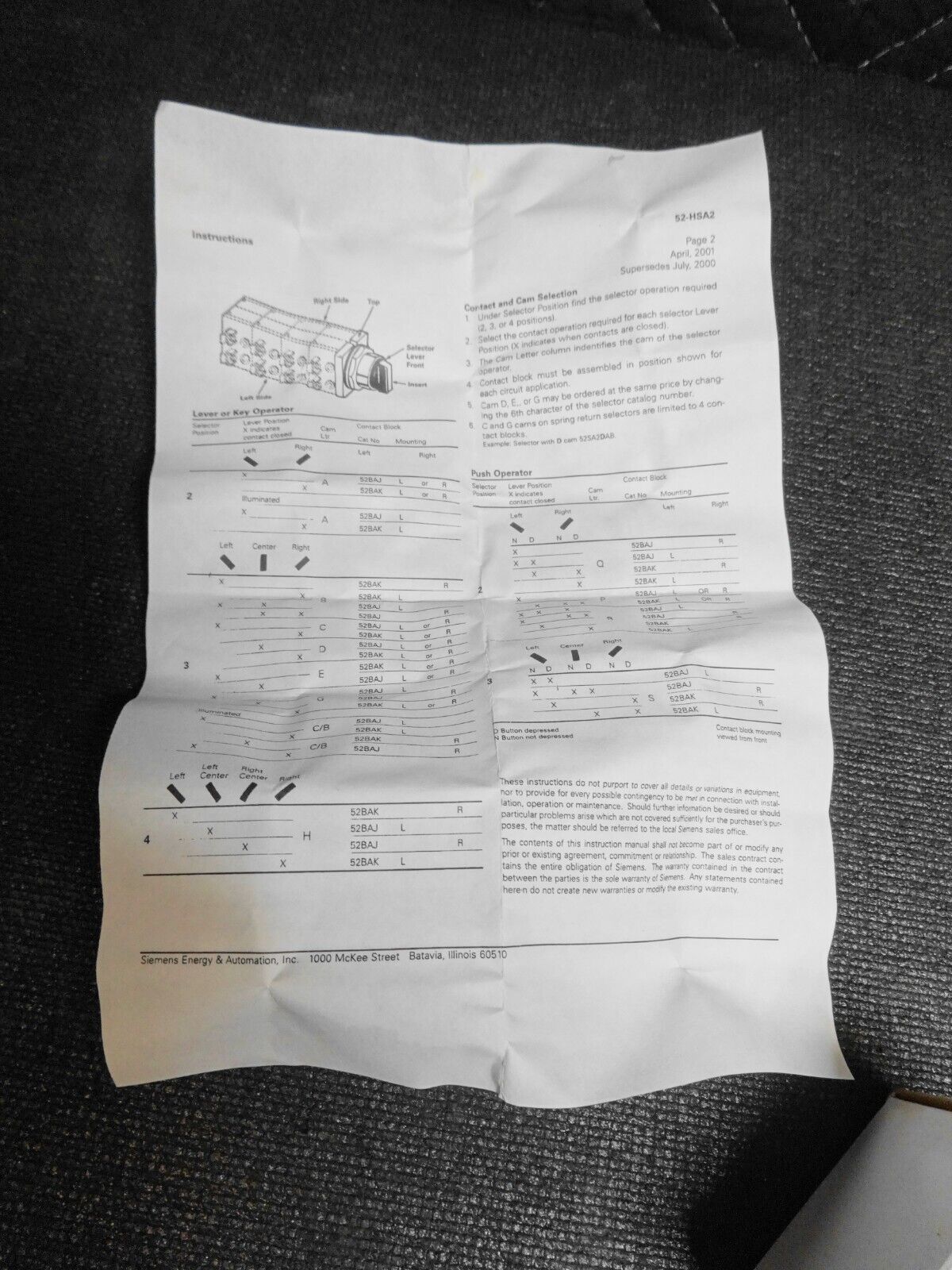Up for sale is this NEW SIEMENS 52SA2AAB Oil Tight Selector Operator Short Lever 2 POS, CAM A Furnas
