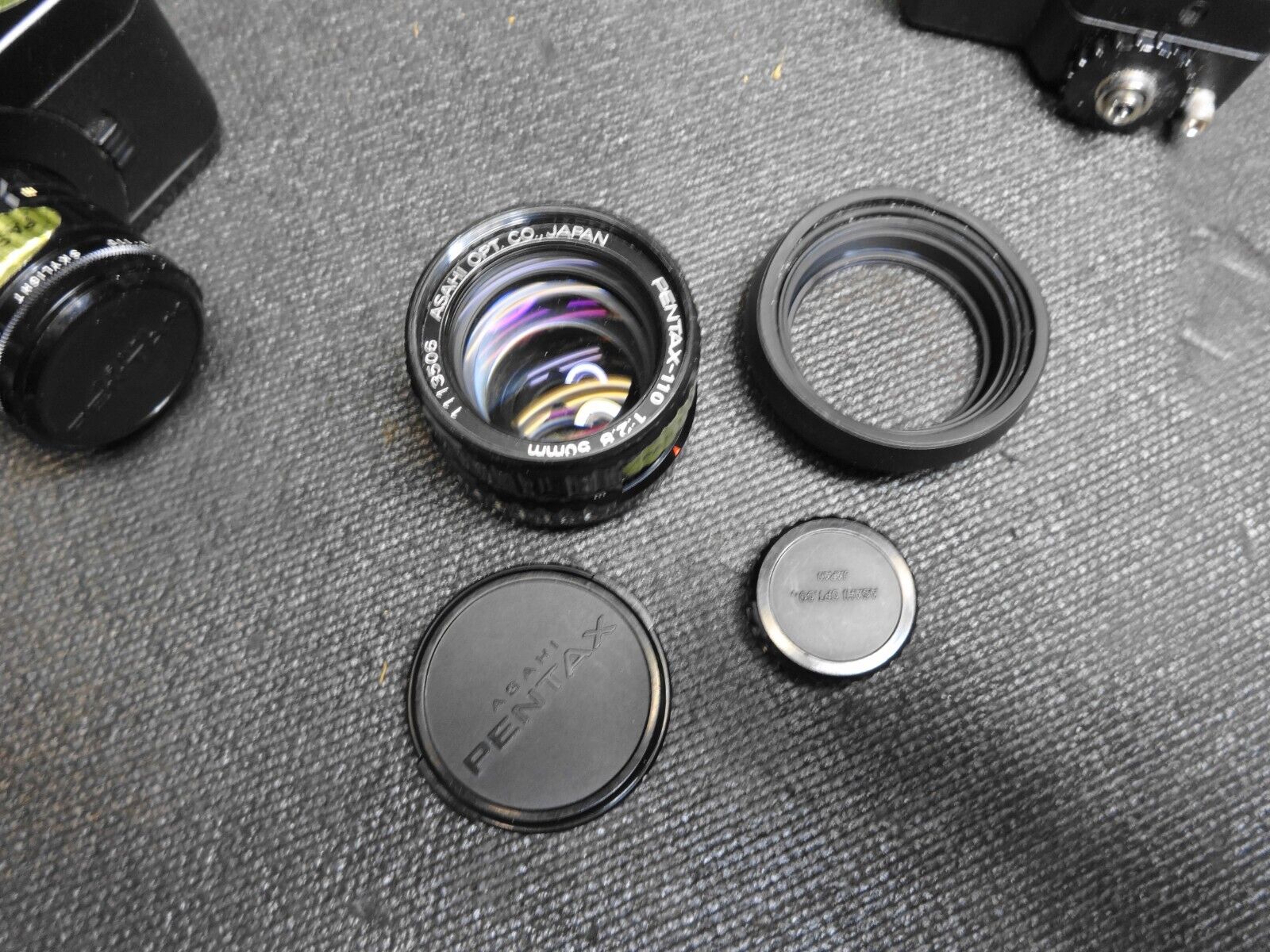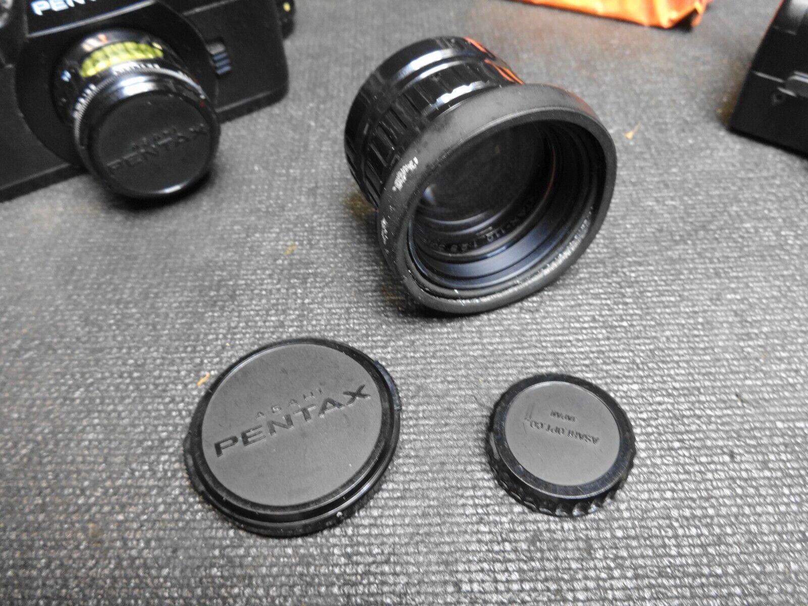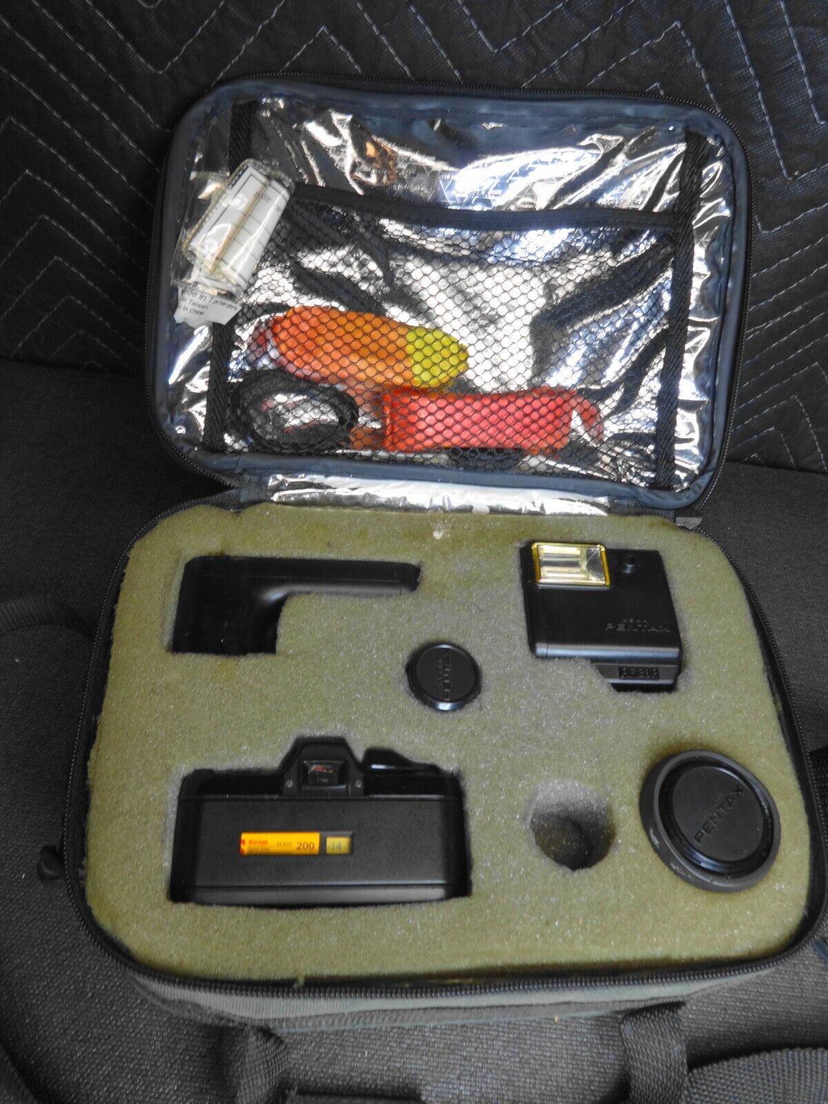 The camera advances film and shutter fires. The Winder and Flash are UNTESTED. No Battery Leakage. The winder has loose battery terminal in battery compartment. The lens are clean - no fungus. The whole lot comes in a padded soft case