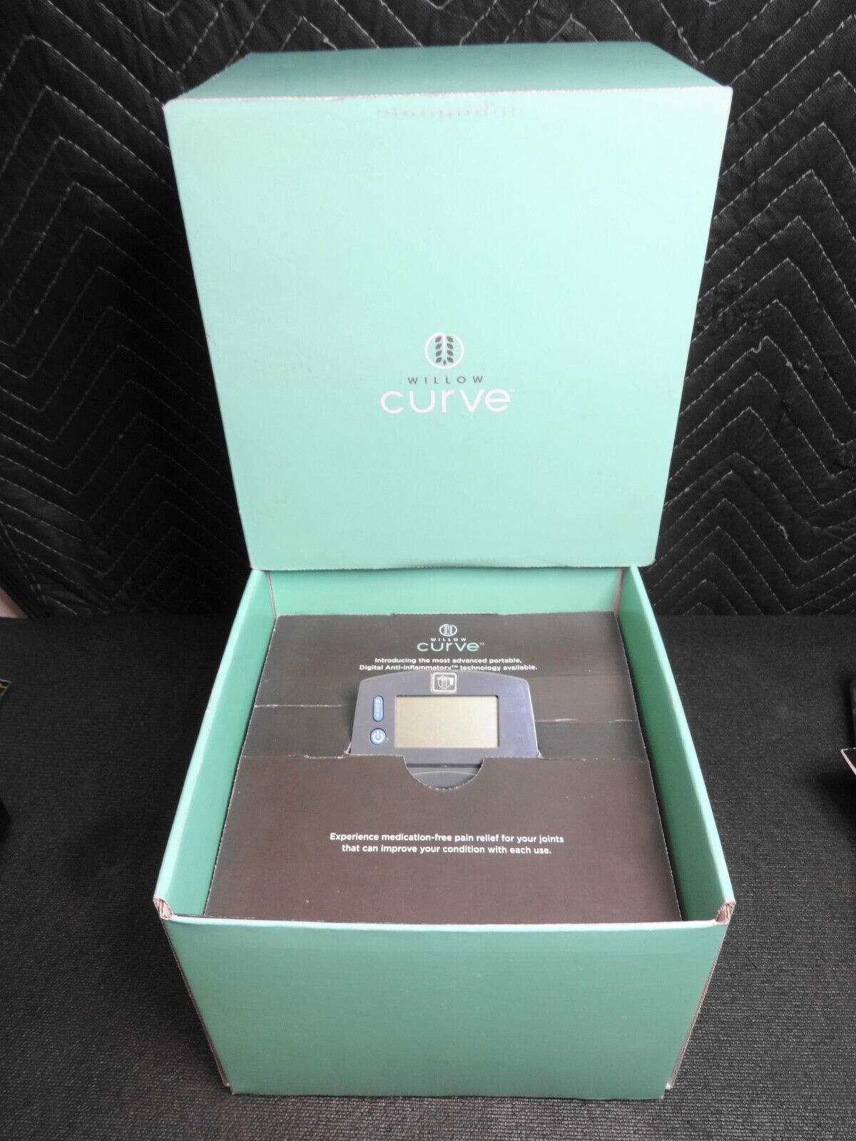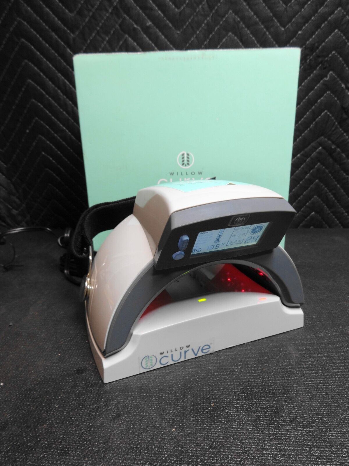 Up for sale is this Willow Curve Battery PT-5 Infrared Light Therapy Pain Relief Device with battery, charger and cradle in original box.